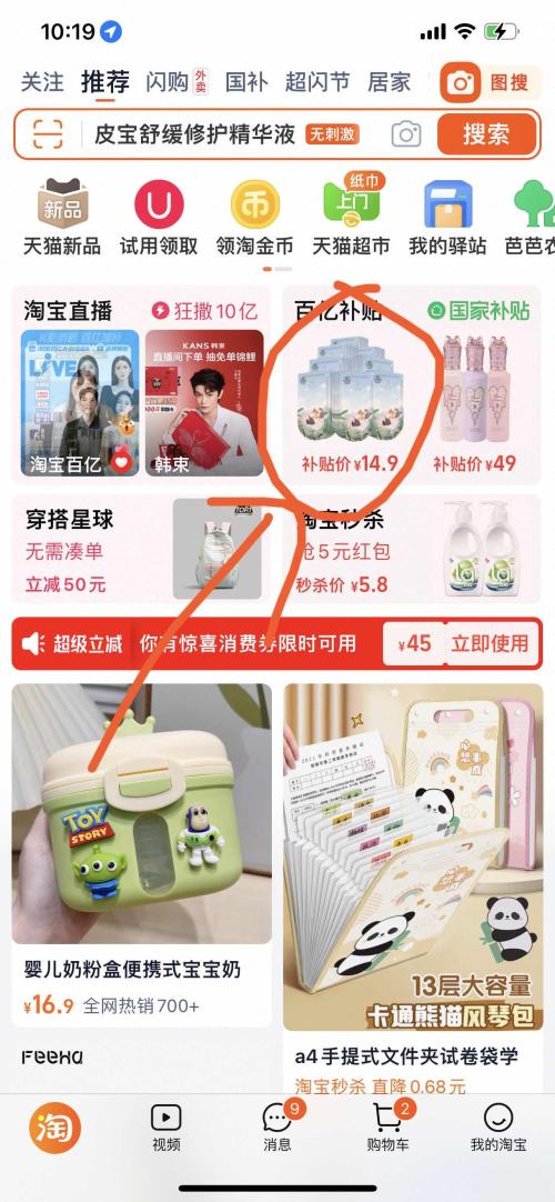 小提示:聚划算「百亿补贴」的商品,直接从小丢这里访问可能是看不到补贴价的。您需要从淘宝APP首页->中间的「百亿补贴」入口进入,然后点击右上角搜索当前商品的关键词。示意图如下:
