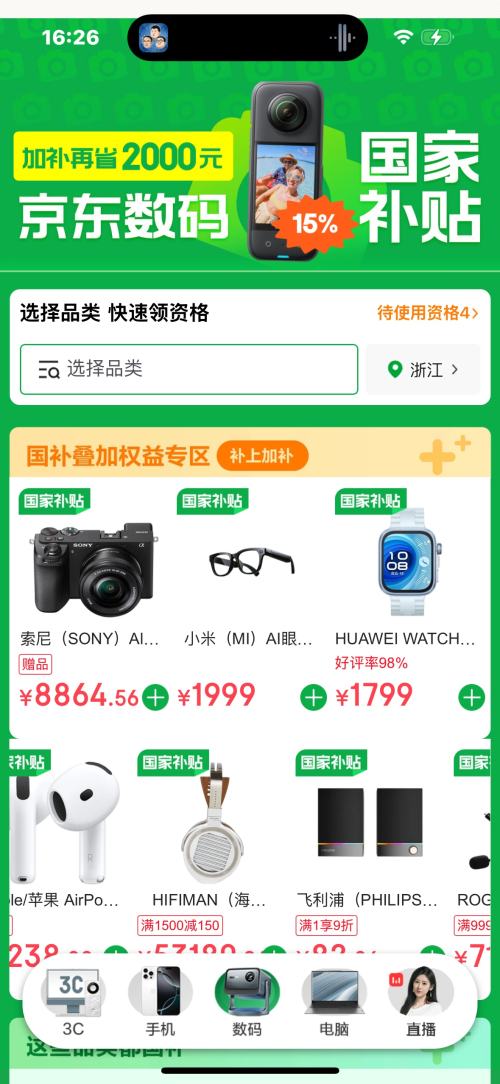 促销活动:京东商城 数码国补 叠加以旧换新立减50﹪起