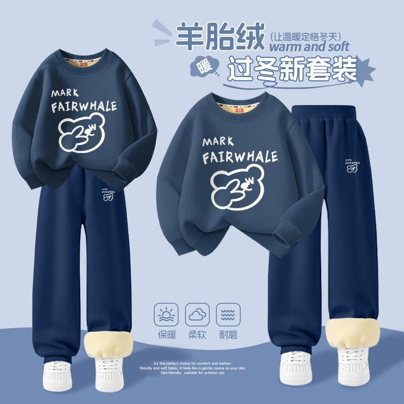 马克华菲男童加绒套装,2025新款比耶熊系列,保暖又时尚,给孩子一个温暖的冬天。