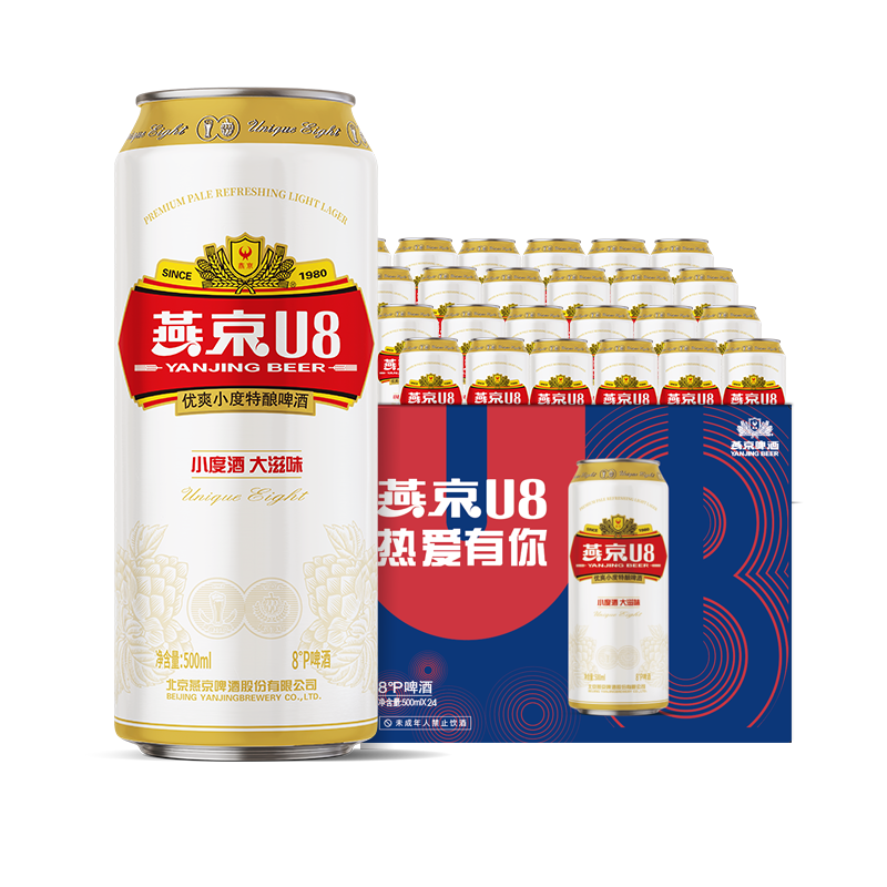 今日必买:燕京啤酒 U8小度酒 500ml*24听 53.3元