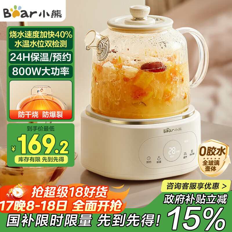 国家补贴:Midea 全玻璃恒温养生壶纯玻璃调奶器烧水壶母婴儿家用煮茶电热水壶 162.26元(需用券)