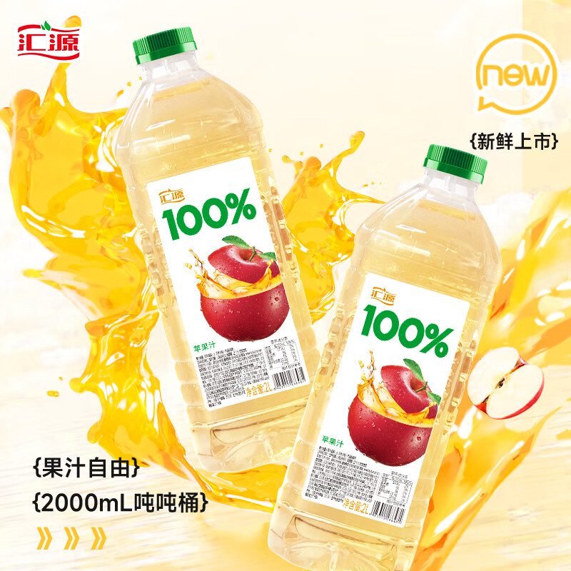 汇源 果汁100%苹果汁 2000ml*1瓶