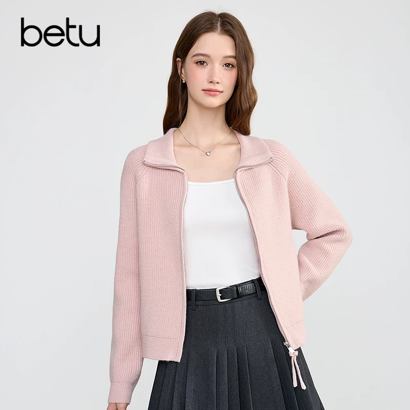 佐丹奴 [卢正义韩国明星款]佐丹奴绞花毛衣女双拉链翻领针织外套05355724 161元