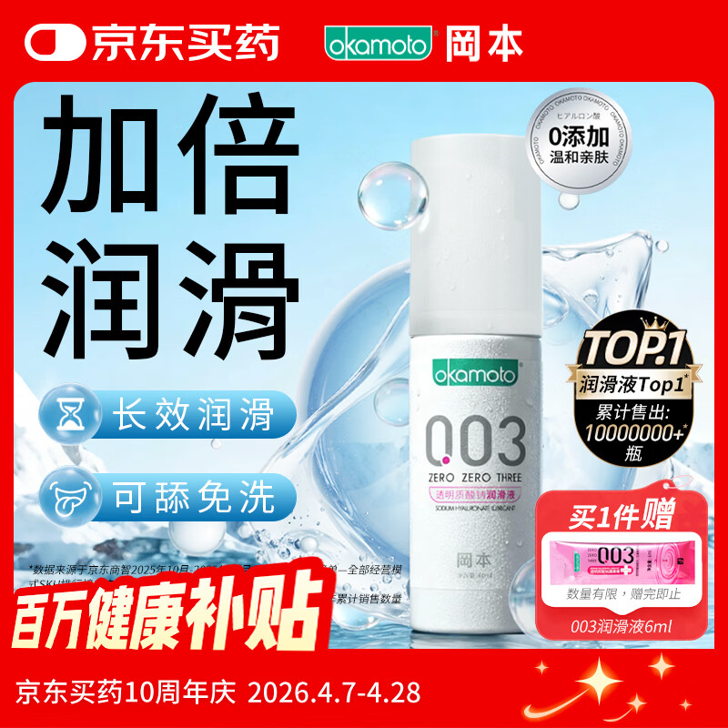 冈本 003系列 透明质酸水溶性润滑液 60ml 46.41元(直播间限时价,赠003润滑液6ml)